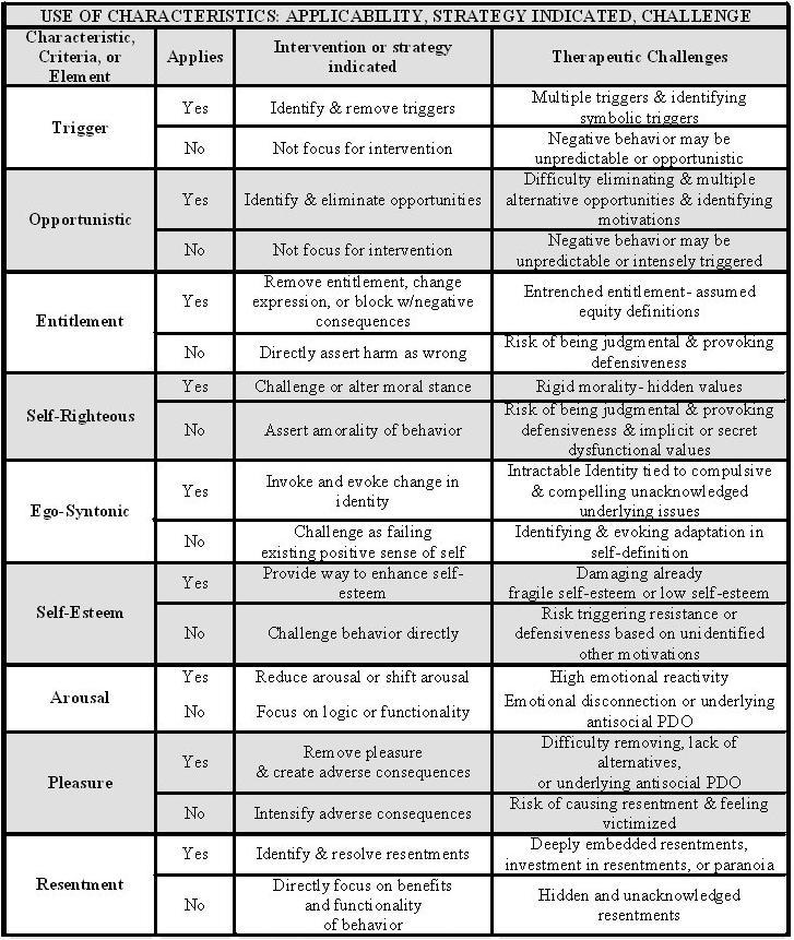 No, if the individual gaining pleasure from the behavior is not relevant or applicable- that is, the behavior causes displeasure, then the intervention or strategy indicated is to intensify already adverse consequences. Confronting the individual with other likely or imminent negative unpleasant consequences may be effective.The therapeutic or other challenge is pleasure in the behavior is not relevant or applicable is that interventions or strategies intensifying unpleasant consequences risk causing resentment and causing the individual to feel victimized.